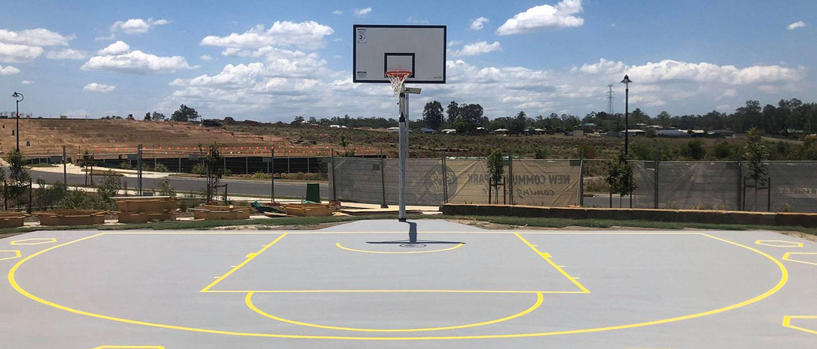 The landscape company had already constructed the slab, and installed the basketball tower, ready for us to come in and complete the surfacing and line marking works.